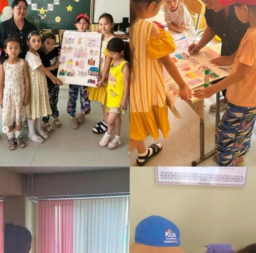 7-маусым күні "Көңілді жұлдыздар"тобы үшін "Сыпайылық" күніне арналған жоспарға сай іс- шаралар және қызықты ойындар ойнатылды. Балаларды қабылдап алған соң,таңғы жаттығу жасап, көңілді музыкаға би билеп, балаларды бір сергітіп алдық. " Әдепті бала- арлы бала" тақырыбымызда балаларға түрлі жағдаяттар беріп, мәселеден шығу жолдарын талқыладық. Балалар оқиғаларға қызыға үңіліп, өмірмен байланыстырып, өз ойларын еркін айтты. Сонымен қатар, " Ағылшынша сөйлейік" атты ағылшын тіліне қосымша сағат арналды. Оқушылар өз білімдерін толықтырып, сөздік қорларын байытты. "Өз қаламызды сүйеміз!"атты тақырыпта Келденова Света балаларға қаланың суреттерін салдырып,барлығы бірге аппликация жасады. Гүлмира Ақшабайқызымен " Жылы жүрек" атты тақырыпта балалармен тренинг өтіп, ойындар ойнатты. Балалар бүгінгі демалыстарын өте жақсы өткізді.