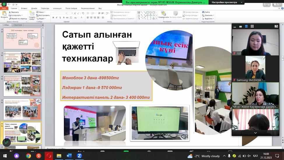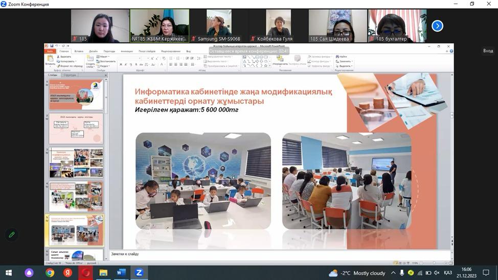№185 жалпы білім беретін мектебінің Қамқоршылық кеңесіне 2023 жылы игерілген қаржы және оның қолданыс жұмсалым есебі берілді. Есеп негіздемесінде 2023 жылдың қаржы жоспары көрсетіліп, қаржы спецификаларының жұмсалым көрсеткіштері таныстырылды. Жалпы 1-4 сыныптардың тамақтануы, ыстық тамақ, әлеуметтік қамсыздану, материалдық-техникалық базаның жасақталуы, модернизациялық қажеттіліктер мен олардың жасалуы толық қаржылық негіздемелері талданып, Қарқоршылық кеңестің отырысында қаралды. Өз кезегінде Қамқоршылық кеңес септі қанағаттанарлық деп қабылдап, жүргізілген қаржылық есептің дұрыстығын қабылдады.