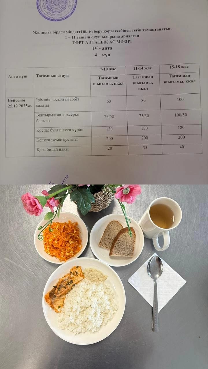» Ас мәзірі ІV апта 4 күн