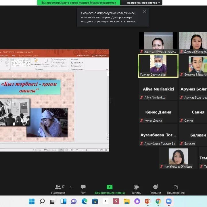 Жаратылыстану циклі пәндері бірлестігінің әдістемелік онкүндігі аясында, 25.01.2022ж. Биология пәні мұғалімдері Мухаметкаримова Жазира, Жаманкеева Динара, №29 қалалық емхананың дәрігері Гүлнар Серікқызымен 9-сынып қыздары арасында семинар-кездесу өткізді.