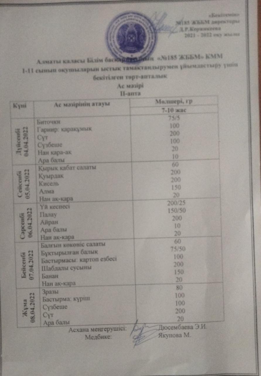 АС МӘЗІРДІҢ 4 АПТАСЫНЫҢ 1 КҮНІ