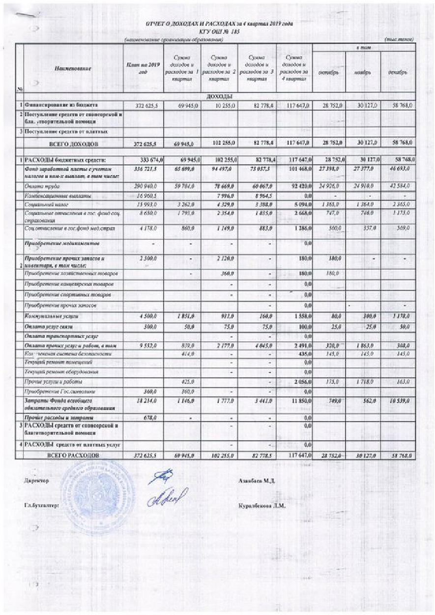 » » » Отчет о доходах и расходах 4 кв 2019