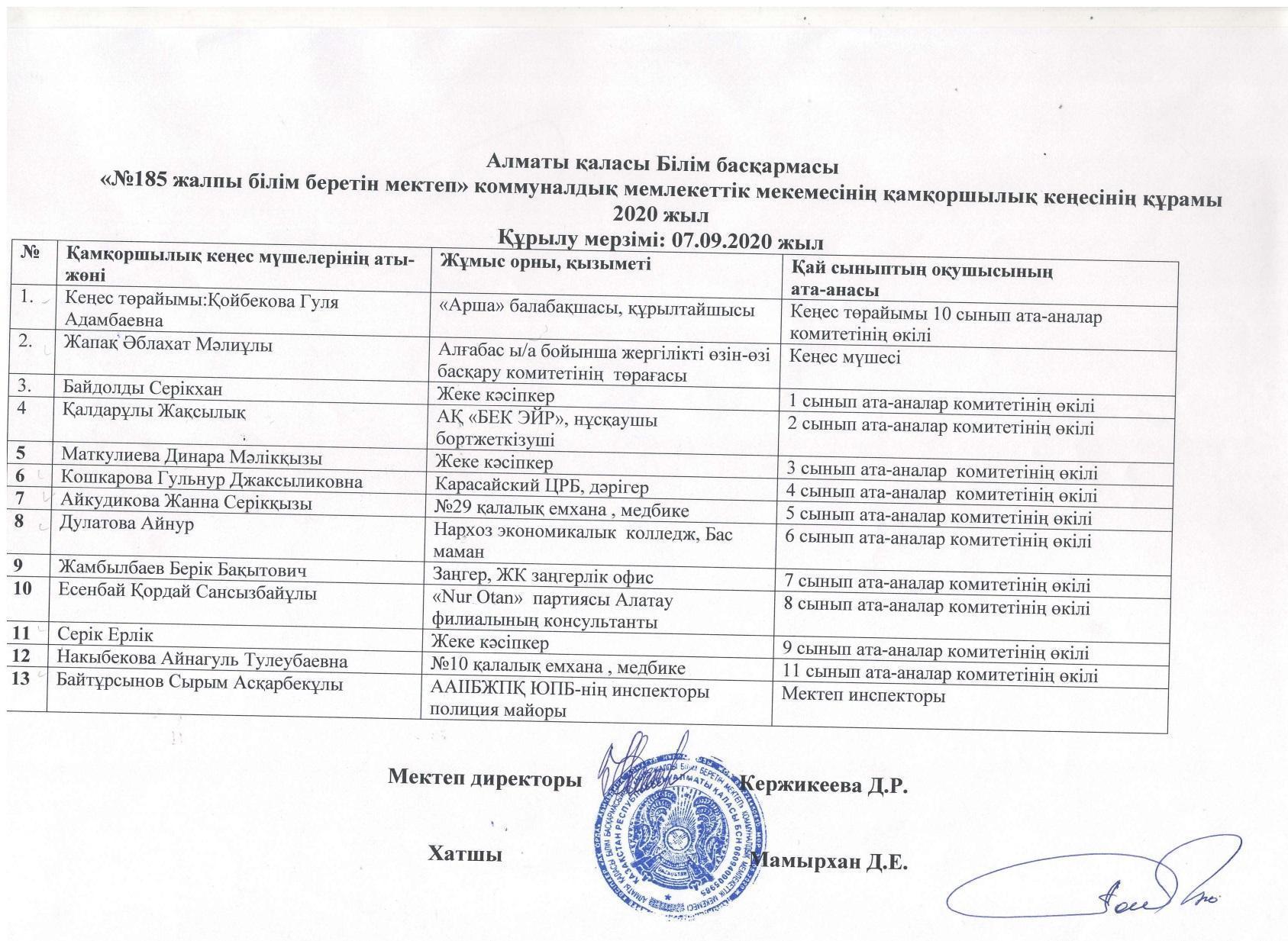 04 сентябрь 2020 0 1 2 3 4 5 "№185жалпы білім беретін мектеп"КММ-нің қамқоршылық кеңесінің құрамы Осы беттің QR-коды:QR-код этой страницы: