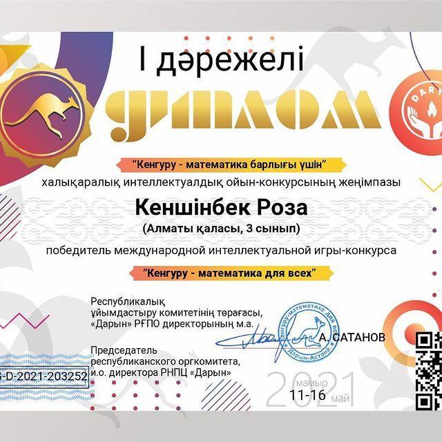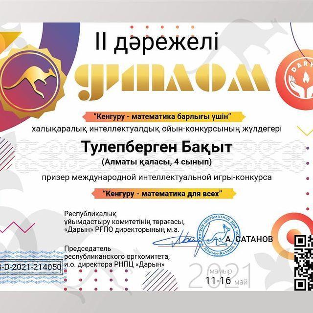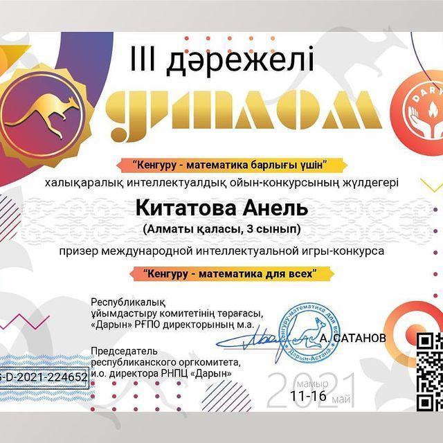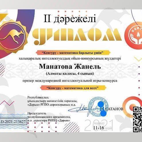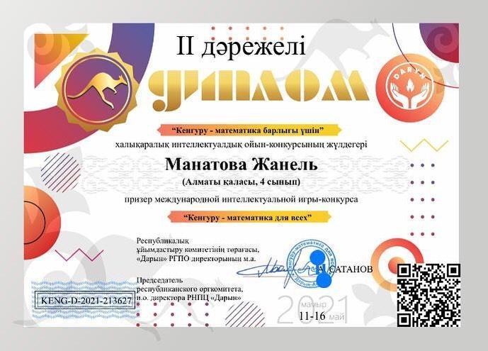 23 июнь 2021 0 1 2 3 4 5 Кенгуру - математика барлығы үшін" халықаралық конкурс Осы беттің QR-коды:QR-код этой страницы: